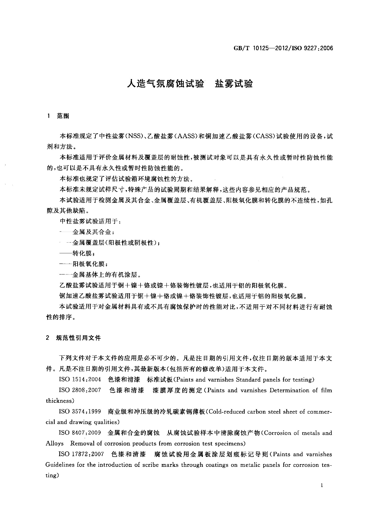 GBT 10125-2012 人造气氛腐蚀试验 盐雾试验