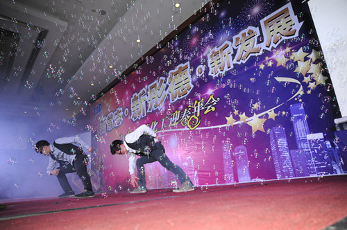 宴会后举行了精彩的迎春晚会,员工们自主创新的表演体现了活力同德的公司文化。