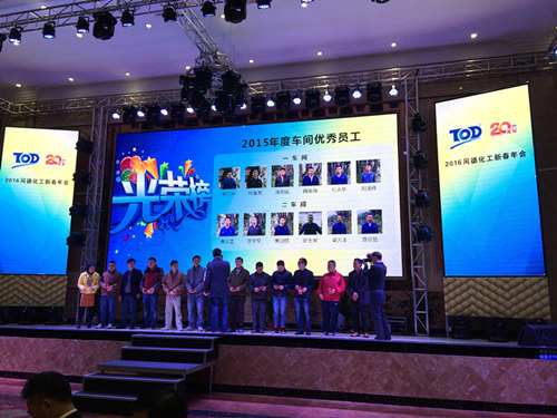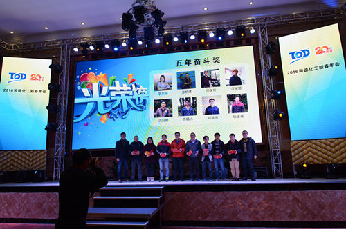 另外,年会现场还举行了隆重的年度颁奖仪式。颁发年度车间优秀员工奖、年度6S优秀部门奖,表彰他们在2015年的优秀表现,鼓励大家再接再厉;颁发5年奋斗奖、10年贡献奖、15年成就奖,感恩他们多年来同心同德默默奋斗,为同德一页又一页的辉煌竭力奉献,成就我们卓越的明天!