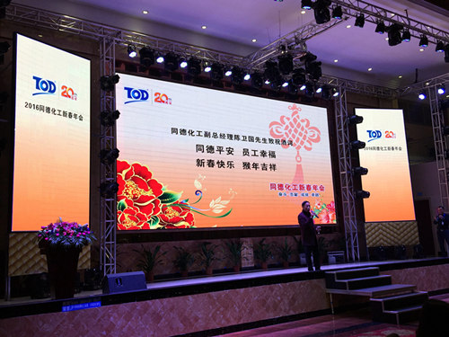 2016年2月1日,佛山市高明同德化工有限公司迎来了一年一度的新春年会盛会。今年年会的主题“直面困难,勇于创新,同德风华二十正扬帆”鼓舞人心。公司总经理何锡恩先生,副总经理陈卫国先生等公司管理层带领高明同德、广东彤德全体仝仁欢聚一堂,一起迎接猴年新春的到来。